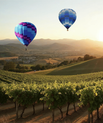 Elevate your wine country adventure with our ultimate Hot Air Balloon & Wine Tour! This exclusive experience has you floating high above the vineyards to watch the Temecula Valley come alive with a breathtaking sunrise, all from the comfort of your hot air balloon, before an afternoon of luxury wine tasting, all in one unforgettable day.